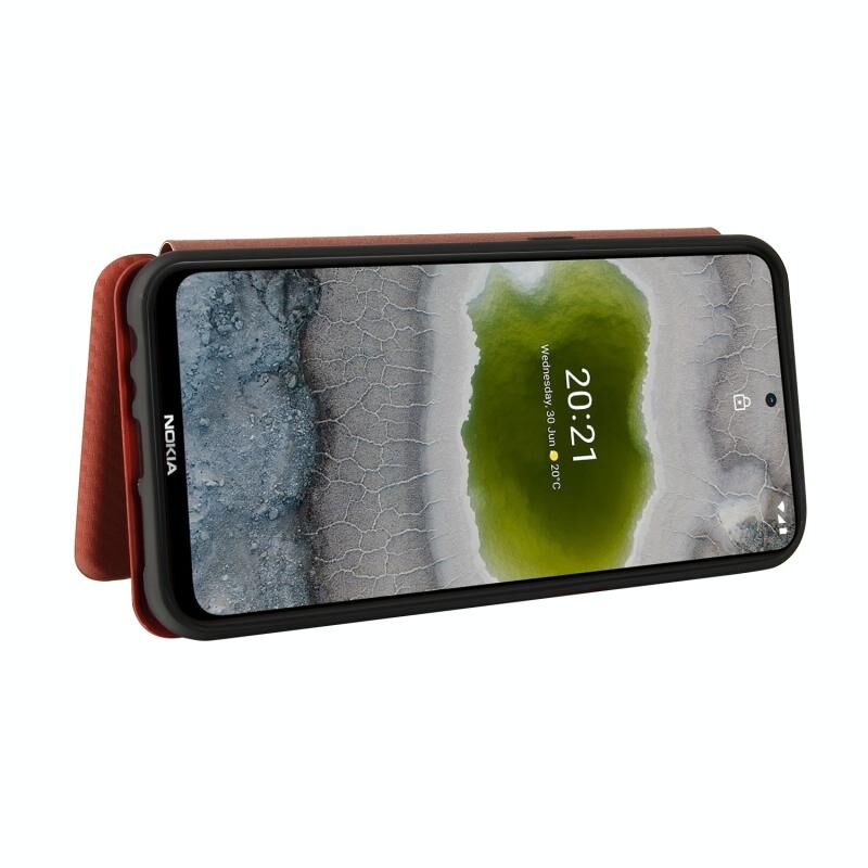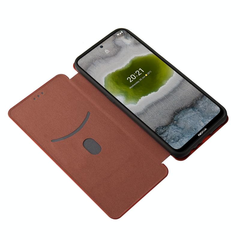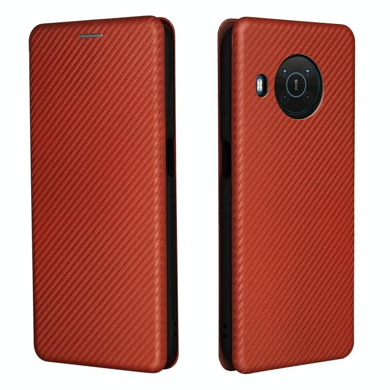 For Nokia X20 Carbon Fiber Texture Horizontal Flip TPU + PC + PU Leather Case with Card Slot(Brown)