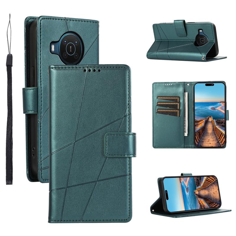 For Nokia X20 PU Genuine Leather Texture Embossed Line Phone Case(Green)
