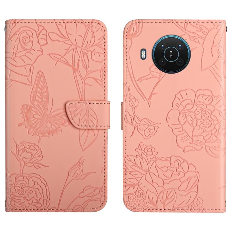 Θήκη τηλεφώνου από δέρμα με ανάγλυφο σχέδιο πεταλούδας και παιώνιας για Nokia X20 (Κόκκινο)