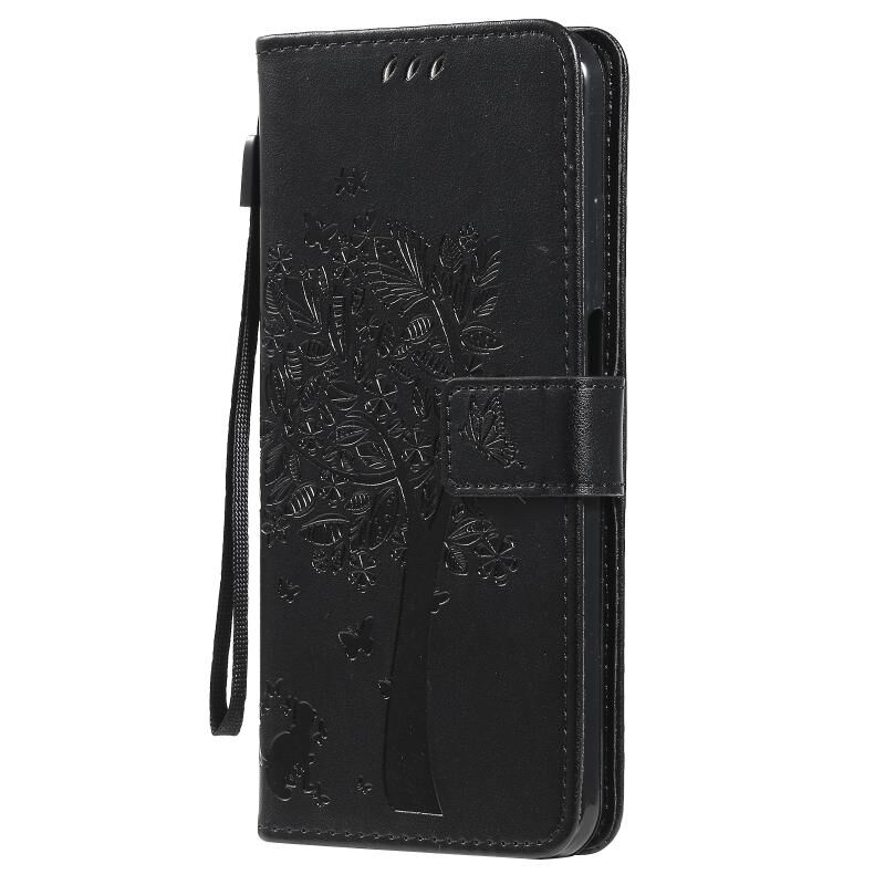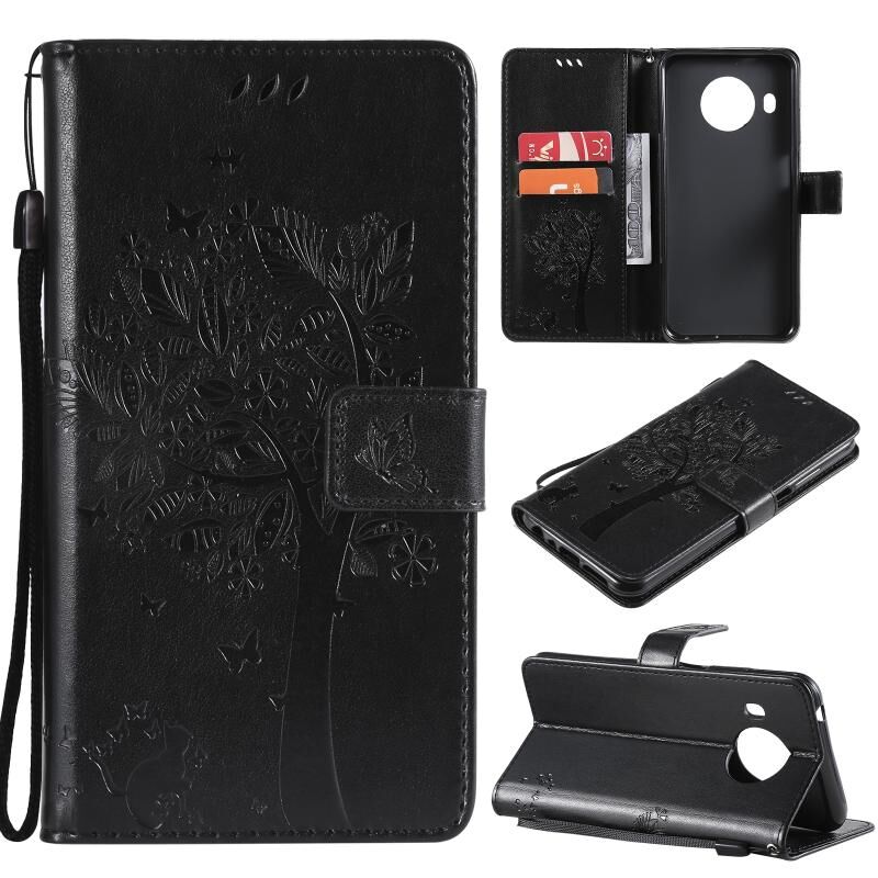Για το Nokia X20 Tree & Cat Pattern Pressed Printing Horizontal Flip PU Leather Case με θήκη & υποδοχές για κάρτες & πορτοφόλι & κορδόνι (μαύρο)