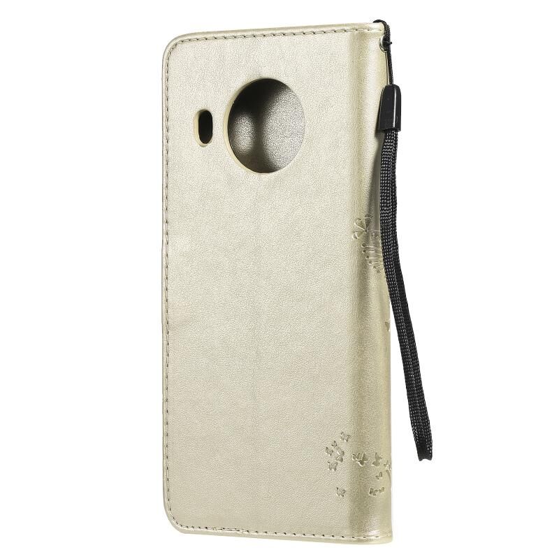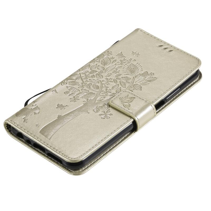 Για το Nokia X20 Tree & Cat Pattern Pressed Printing Horizontal Flip PU Leather Case with Holder & Card Slots & Wallet & Lanyard (Gold)