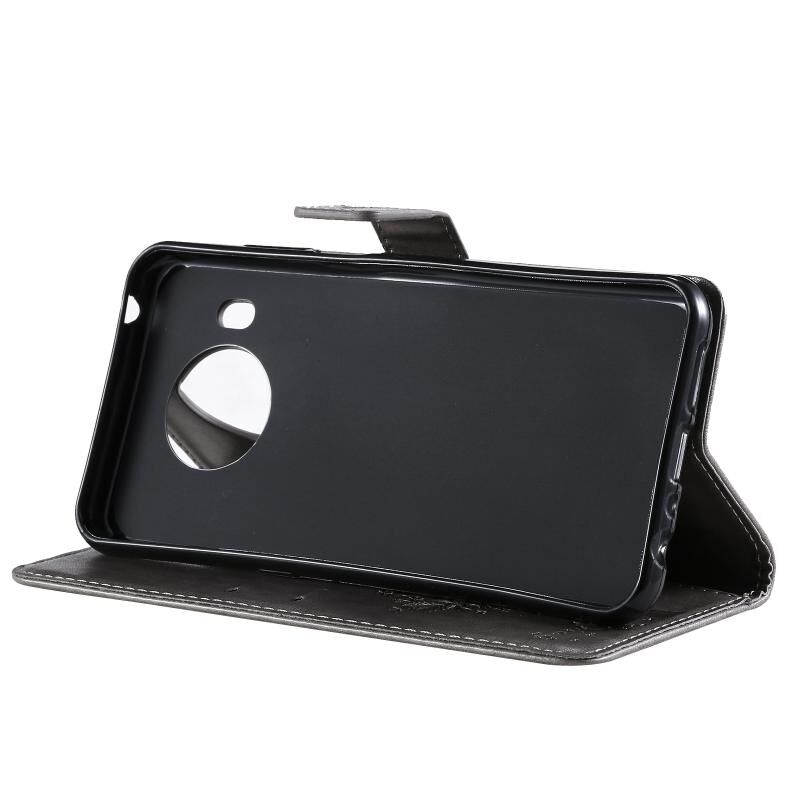 Για το Nokia X20 Tree & Cat Pattern Pressed Printing Horizontal Flip PU Leather Case με θήκη & υποδοχές για κάρτες & πορτοφόλι & κορδόνι (γκρι)