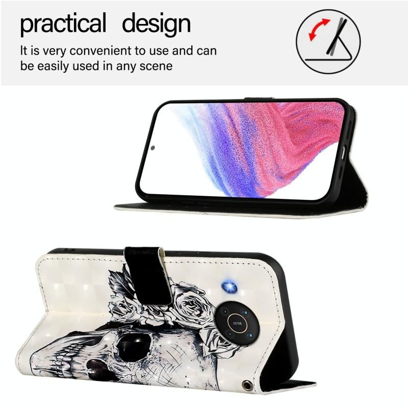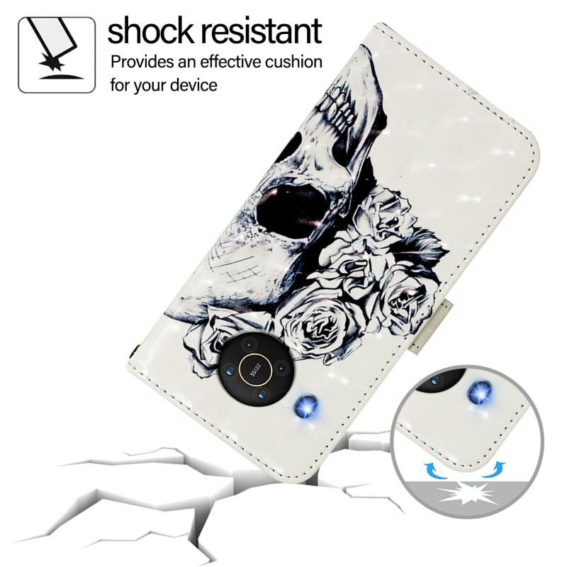 Θήκη τηλεφώνου από δέρμα με οριζόντια αναδίπλωση και τρισδιάστατη ζωγραφική για Nokia X20 / X10 (Κρανίο)
