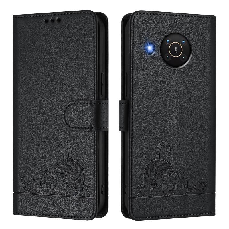 Θήκη τηλεφώνου από δέρμα με ανάγλυφο σχέδιο γάτας και ποντικού για Nokia X20 / X10 με κορδόνι (Μέντας Πράσινο)
