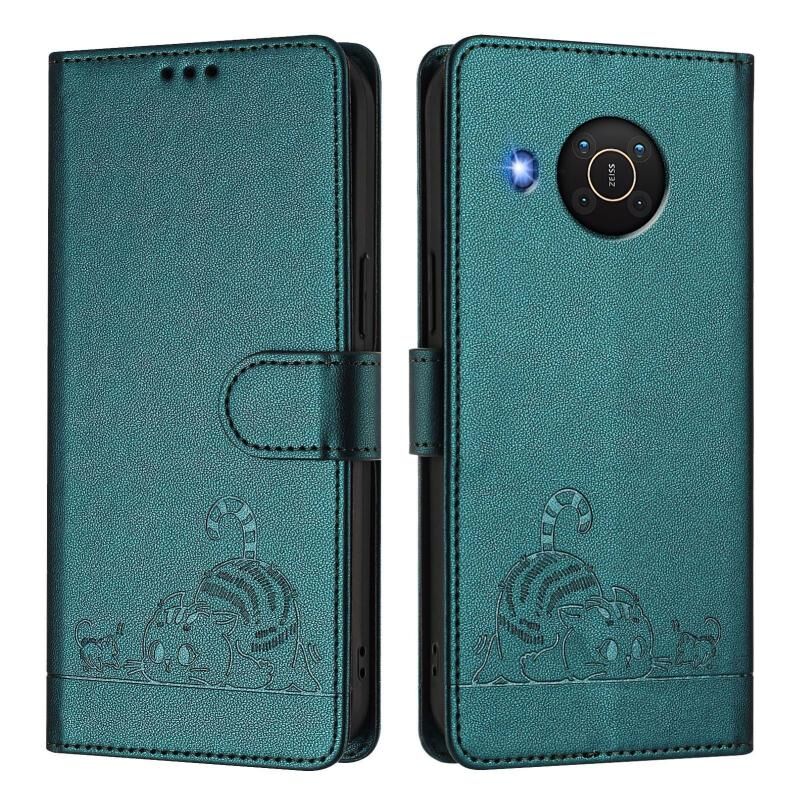 Θήκη τηλεφώνου από δέρμα με ανάγλυφο σχέδιο γάτας και ποντικού για Nokia X20 / X10 με κορδόνι (Μέντας Πράσινο)