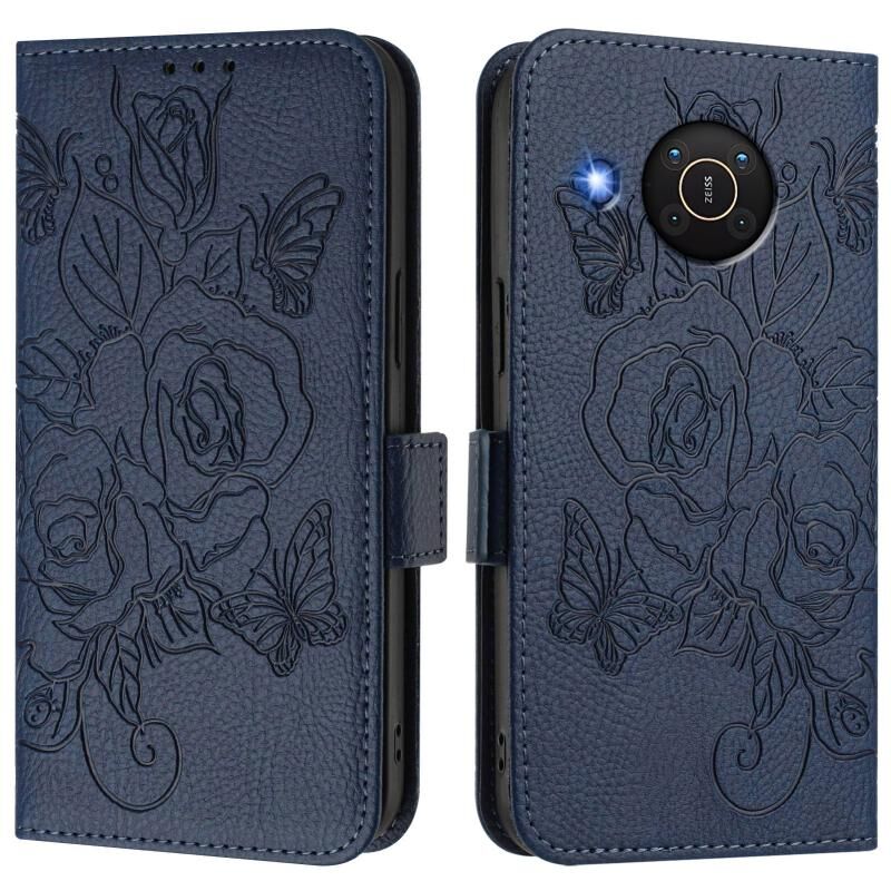 For Nokia X20 / X10 Embossed Rose RFID Anti-theft Leather Phone Case(Dark Blue)
