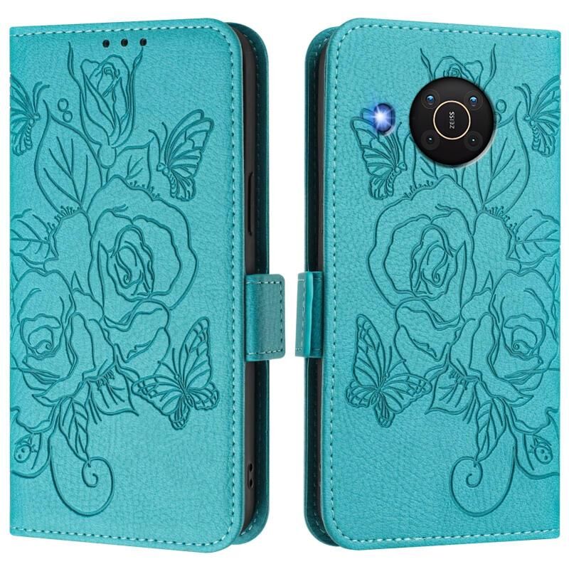 For Nokia X20 / X10 Embossed Rose RFID Anti-theft Leather Phone Case(Light Blue)