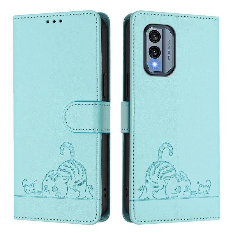 Θήκη τηλεφώνου δερμάτινη με ανάγλυφο σχέδιο γάτας και σκύλου για Nokia X30 5G, με κορδόνι (Μέντας Πράσινο)