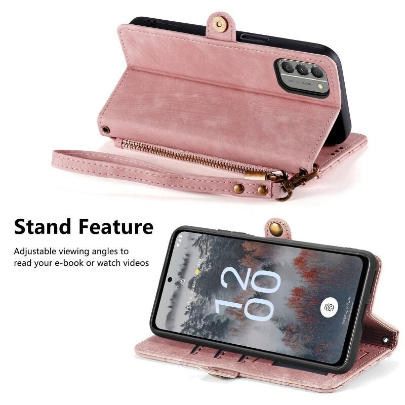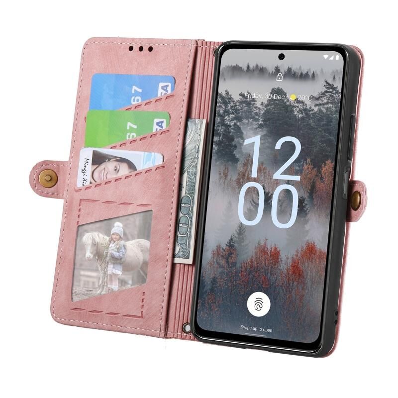 Για Nokia X30 5G γεωμετρική φερμουάρ πορτοφόλι πλευρά πόρπη δέρμα τηλέφωνο υπόθεση (ροζ)