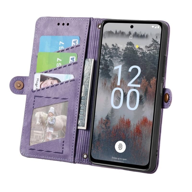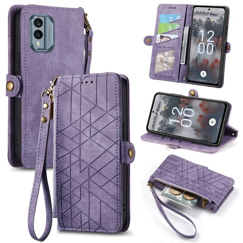 Για Nokia X30 5G γεωμετρική φερμουάρ πορτοφόλι πλευρά πόρπη δερμάτινη θήκη τηλεφώνου (μοβ)