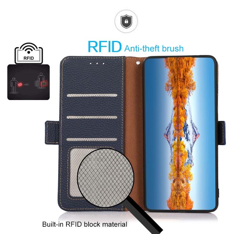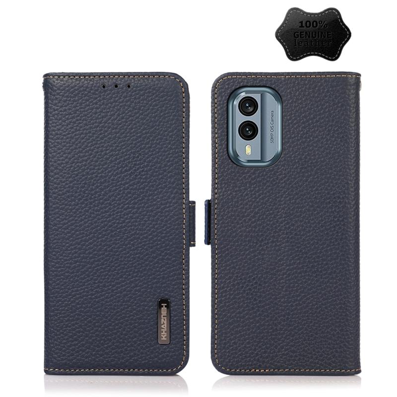 Θήκη τηλεφώνου Nokia X30 5G KHAZNEH με μαγνητικό κλείσιμο, από γνήσιο δέρμα Litchi με προστασία RFID (Καφέ)