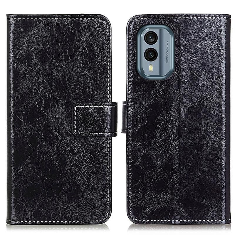 Θήκη τηλεφώνου δέρματος με οριζόντιο άνοιγμα για Nokia X30 5G, με ανάγλυφη υφή Crazy Horse (Μαύρο)