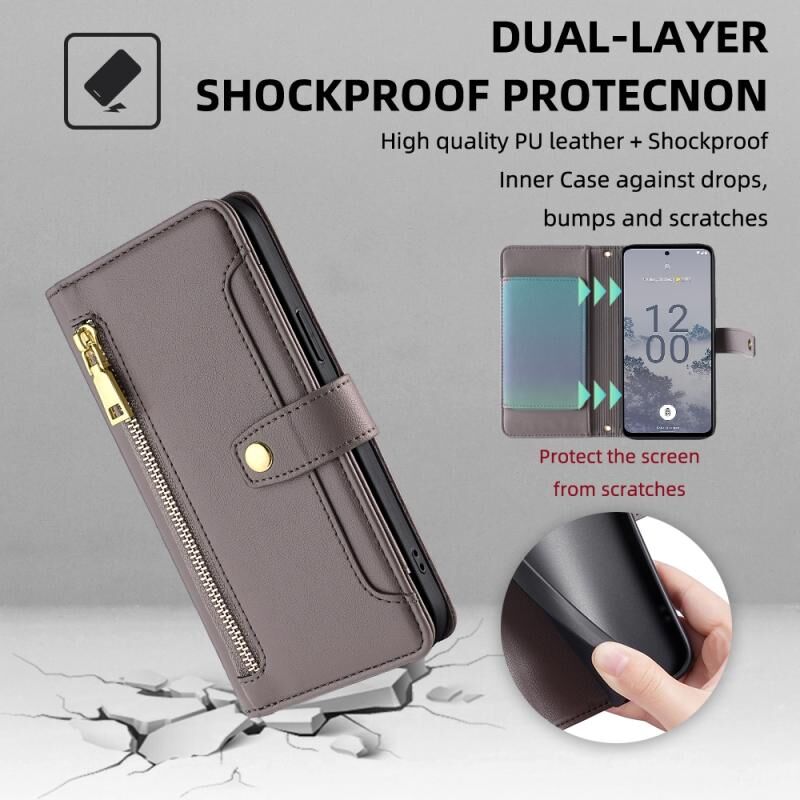 2. Λειτουργία πορτοφολιού πολλαπλών καρτών: Θήκες για κάρτες και διαμέρισμα με φερμουάρ για την αποθήκευση των πιστωτικών σας καρτών, μετρητών ή μικρών σημειώσεων για καθημερινή χρήση.