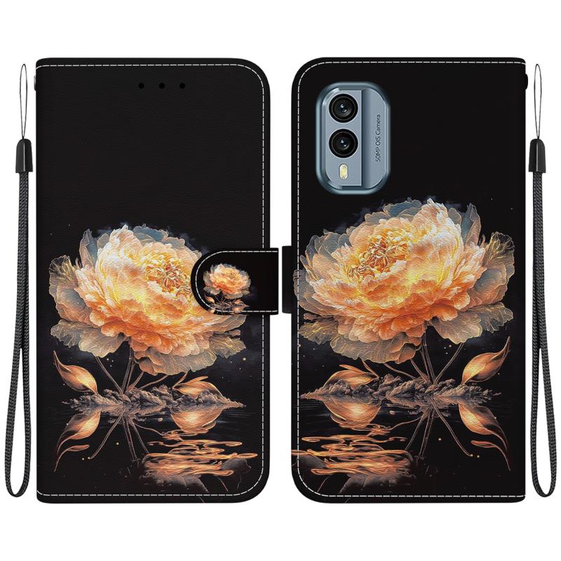 For Nokia X30 Crystal Texture Colored Drawing Leather Phone Case(Gold Peony)