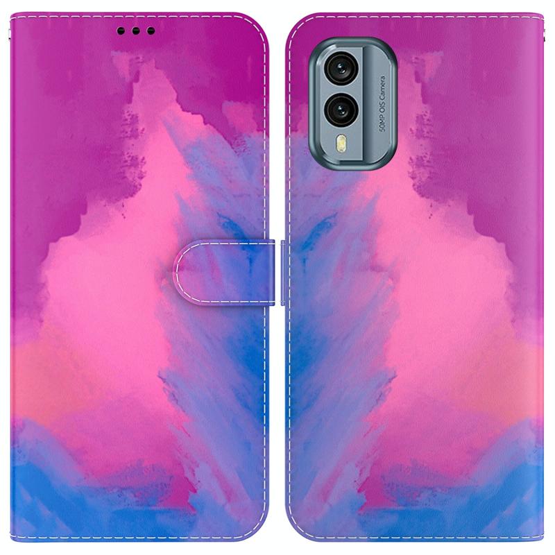 Θήκη τηλεφώνου από δέρμα με σχέδιο ακουαρέλας για Nokia X30 (Μωβ-Κόκκινο)