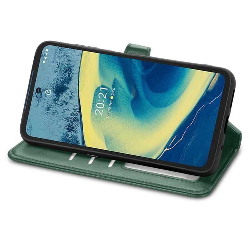 Για το Nokia XR 20 Αμιγές χρώμα δερμάτινη θήκη τηλεφώνου πόρπη με κορδόνι & πλαίσιο φωτογραφιών & υποδοχή κάρτας & πορτοφόλι & λειτουργία Stand (πράσινο)