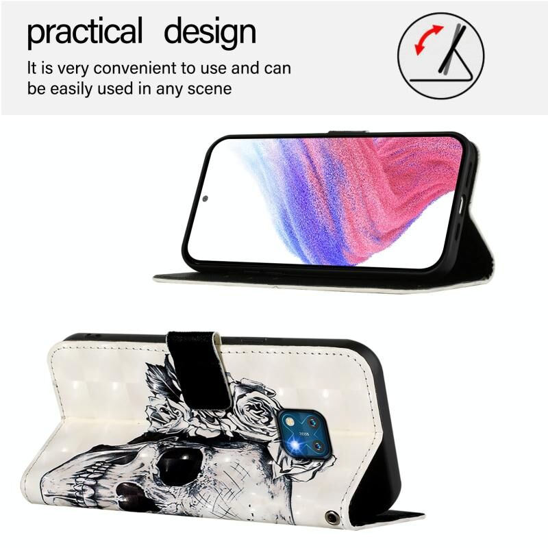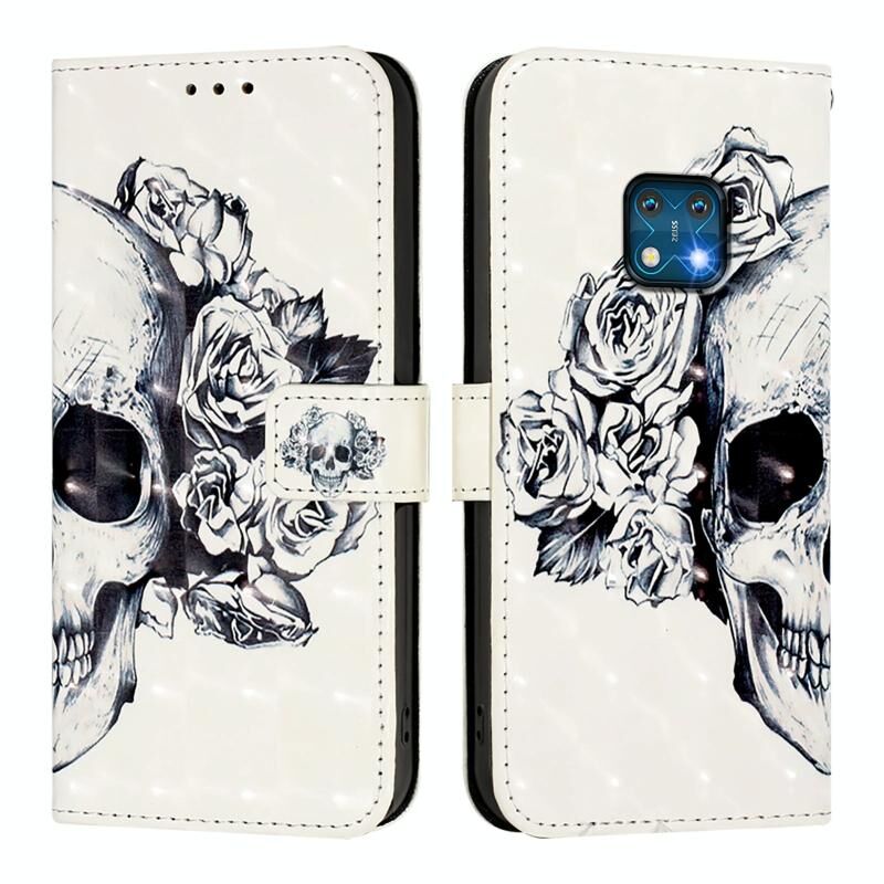 Θήκη τηλεφώνου από δέρμα με οριζόντια αναδίπλωση και τρισδιάστατη ζωγραφική για Nokia XR20 (Κρανίο)
