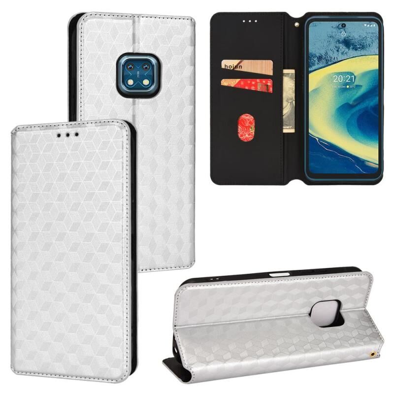 For Nokia XR20 Cubic Grid Texture Flip Leather Phone Case(Silver)