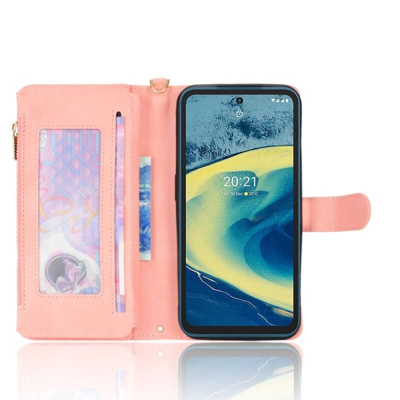 Για Nokia XR20 Litchi Υφή φερμουάρ δερμάτινη θήκη τηλεφώνου (ροζ)