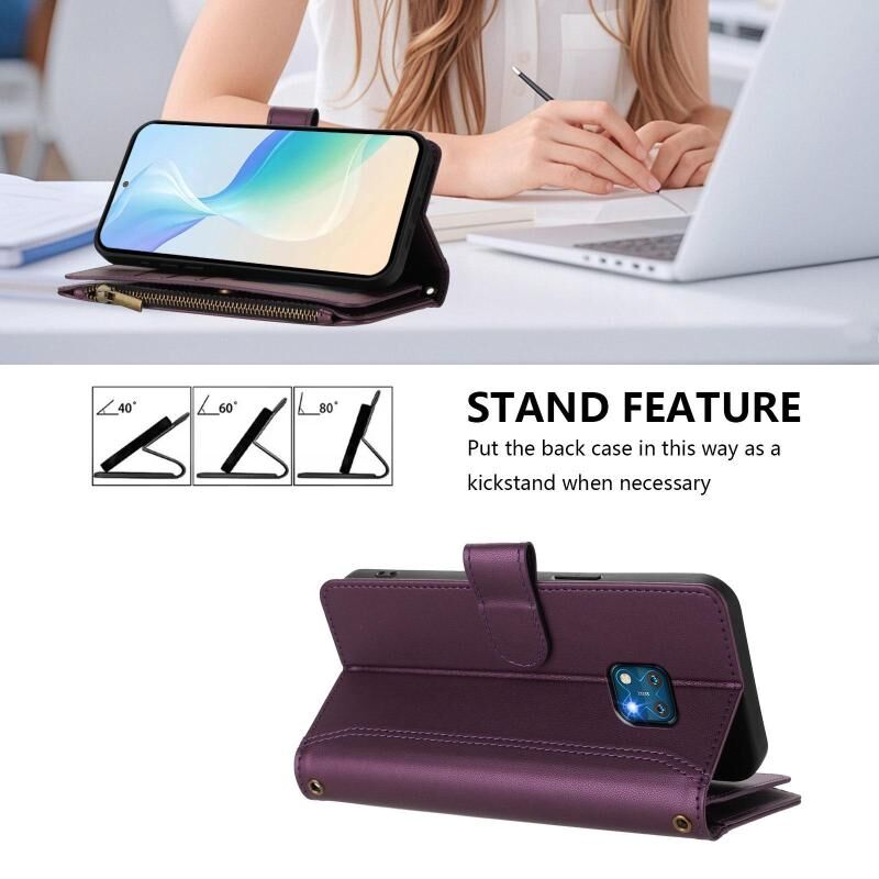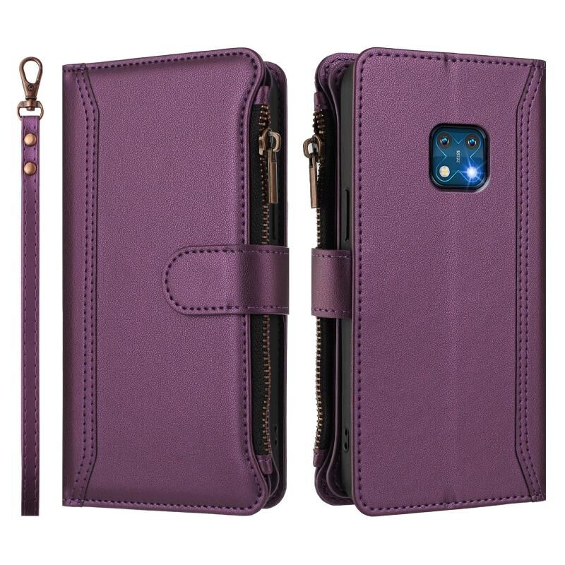 For Nokia XR20 Magnetic Closure 9 Card Slots Zipper Leather Case with Hand Strap(Purple)