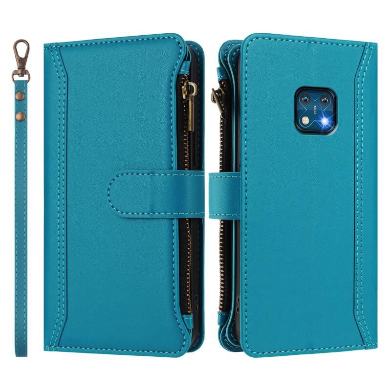 For Nokia XR20 Magnetic Closure 9 Card Slots Zipper Leather Case with Hand Strap(Turquoise)