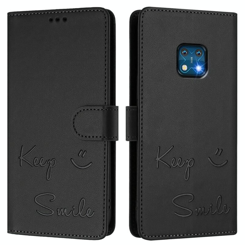 Για Nokia XR20 Χαμόγελο ανάγλυφο RFID δερμάτινη θήκη τηλεφώνου (Μαύρο)
