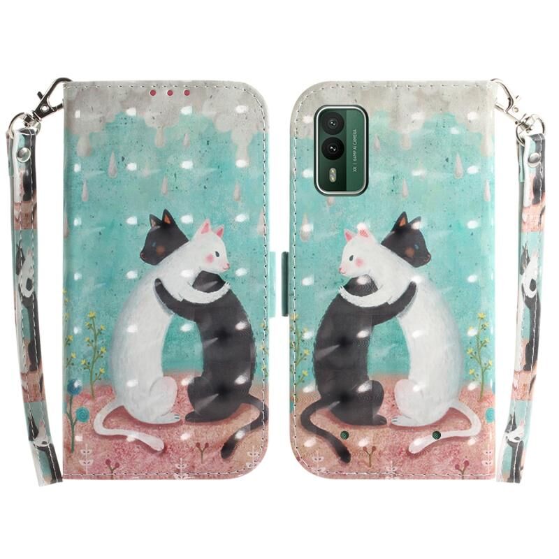 Θήκη τηλεφώνου δερμάτινη οριζόντια αναδιπλούμενη με έγχρωμο 3D σχέδιο για Nokia XR21 (Μαύρη Λευκή Γάτα)