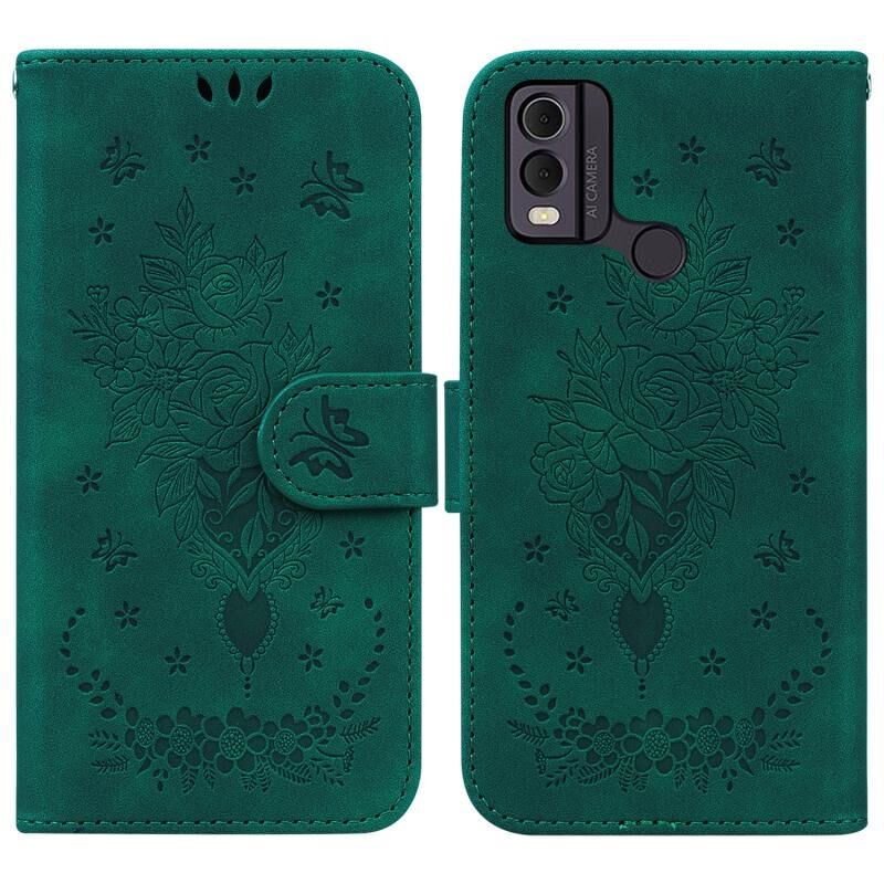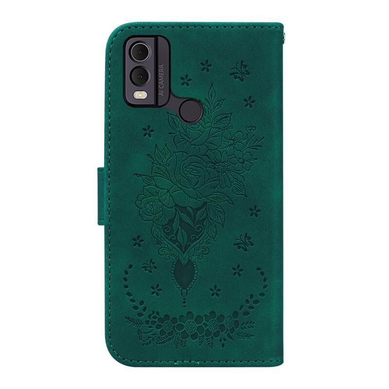 Για Nokia XR21 Πεταλούδα Rose ανάγλυφη δερμάτινη θήκη τηλεφώνου (πράσινο)
