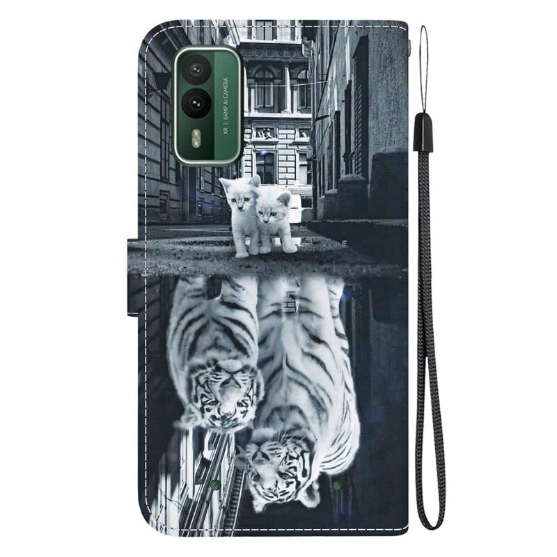 Θήκη τηλεφώνου Nokia XR21 Crystal Texture Colored Drawing Leather (Αντανάκλαση Γάτας Τίγρης)