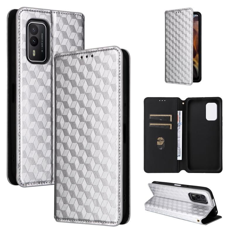For Nokia XR21 Cubic Grid Texture Flip Leather Phone Case(Silver)