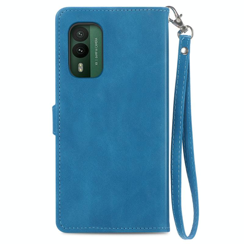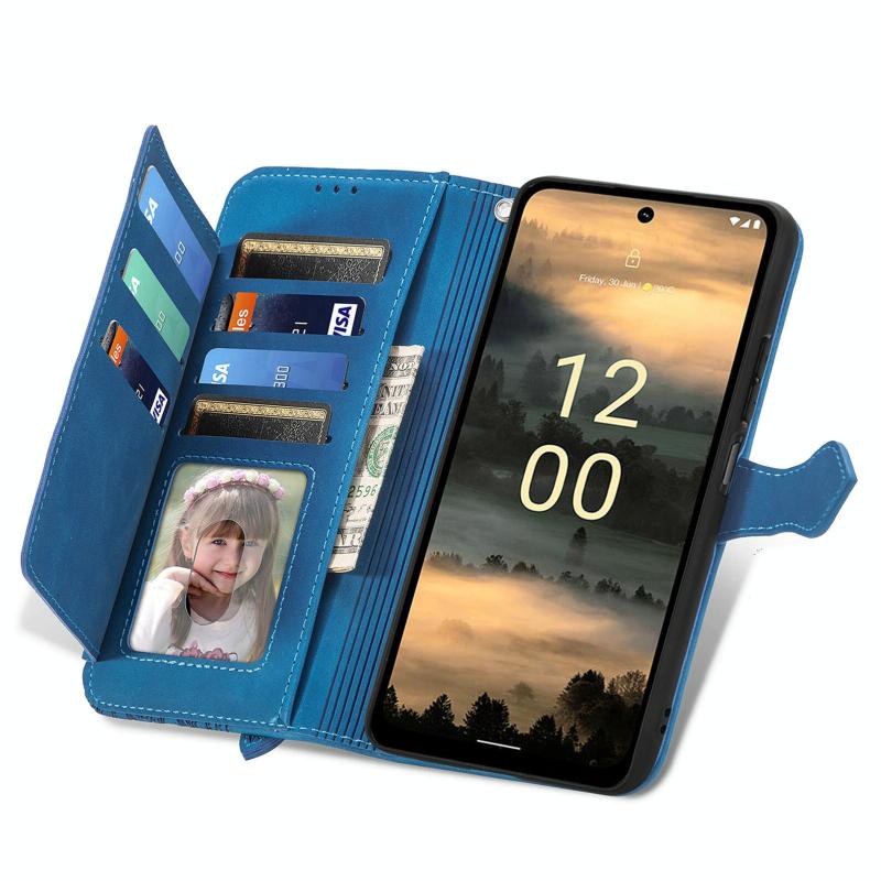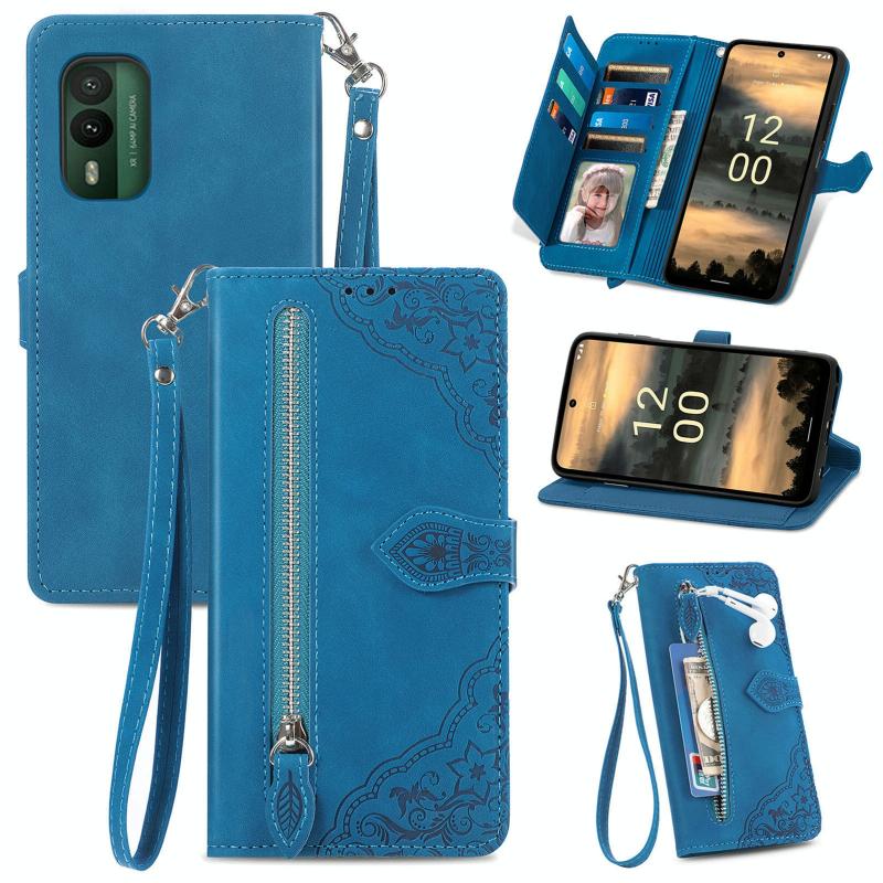 Για Nokia XR21 Δερμάτινη Θήκη με Λουλούδι και Φερμουάρ (Μπλε)