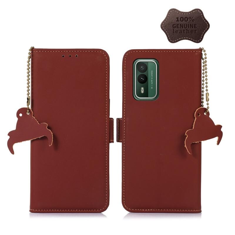 Θήκη τηλεφώνου από γνήσιο δέρμα με μαγνητικό κλείσιμο για Nokia XR21 (Καφέ)