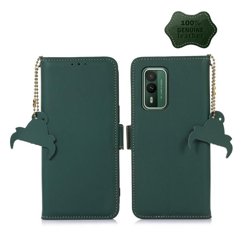 Θήκη τηλεφώνου από γνήσιο δέρμα με μαγνητικό κλείσιμο και προστασία RFID για Nokia XR21 (Μπλε)