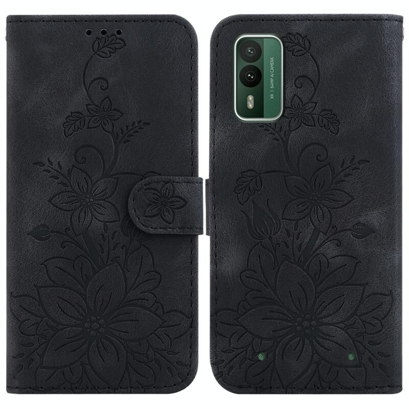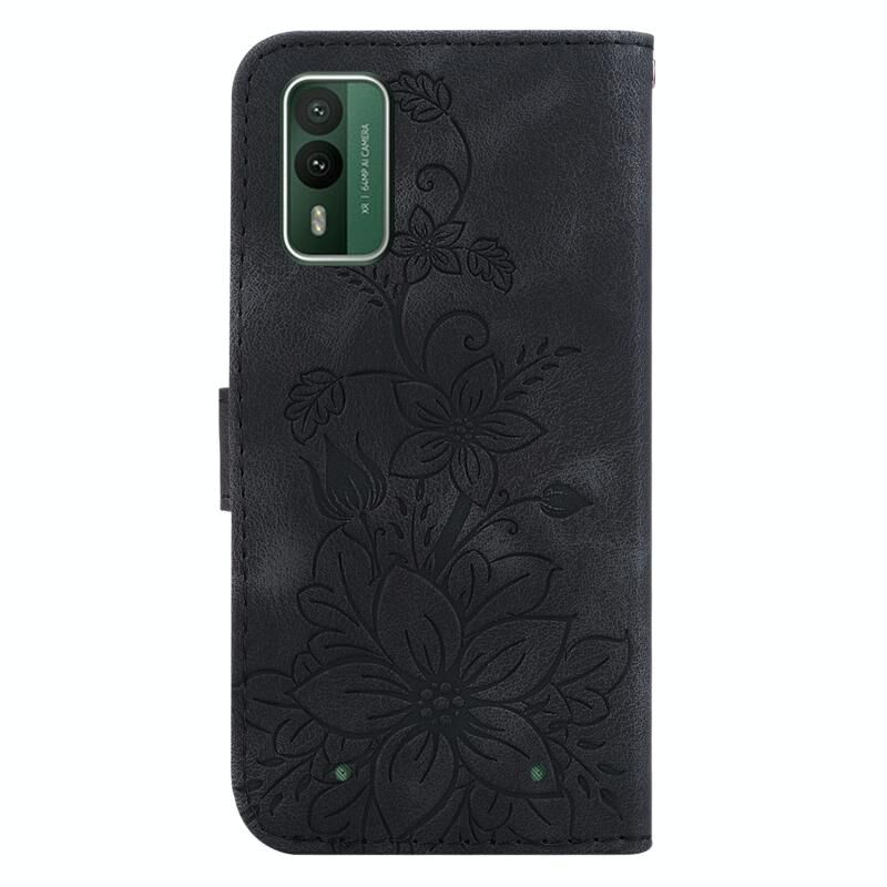 Για Nokia XR21 Lily ανάγλυφη δερμάτινη θήκη τηλεφώνου (μαύρο)
