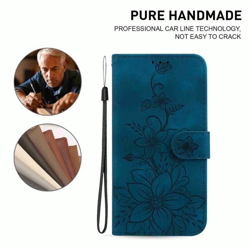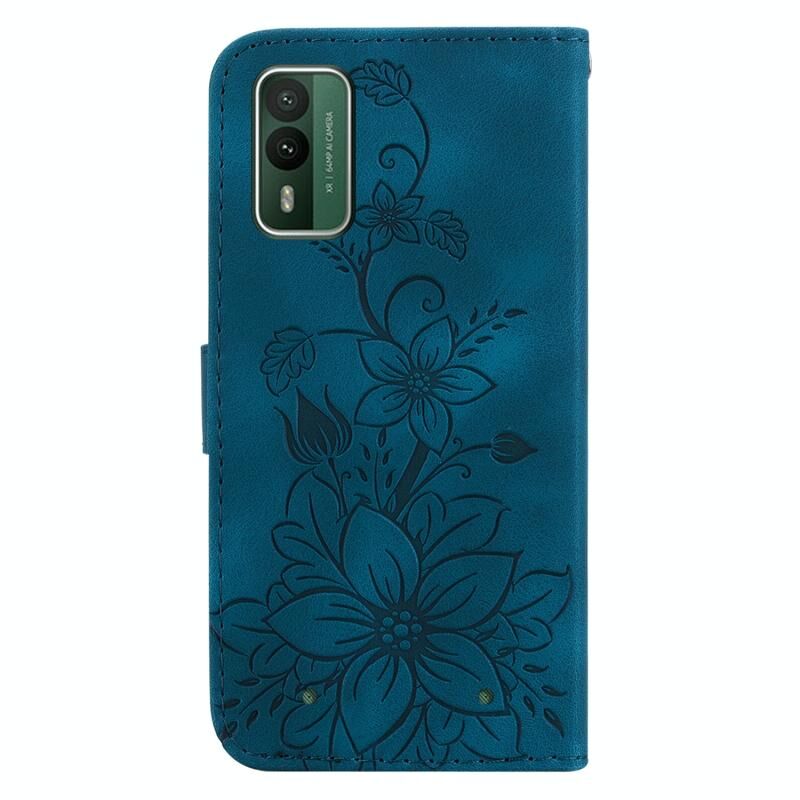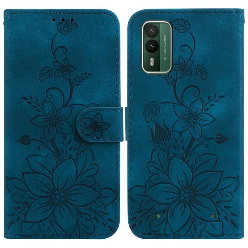 Για Nokia XR21 Lily ανάγλυφη δερμάτινη θήκη τηλεφώνου (σκούρο μπλε)