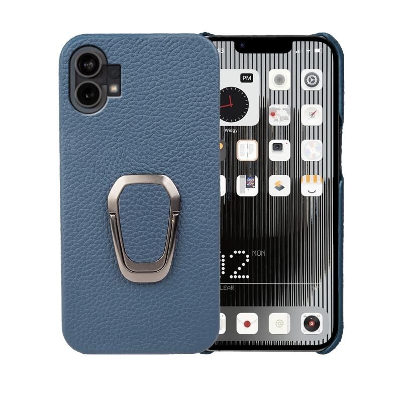 Θήκη τηλεφώνου για Nothing Phone 1 με δακτύλιο στήριξης, γνήσιο δέρμα με υφή λύτσι (Μαύρο)