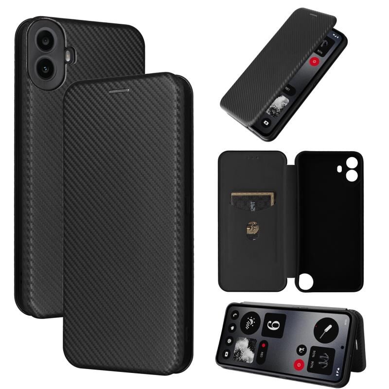 Για τίποτα CMF τηλέφωνο 1 Carbon Fiber υφή Flip δέρμα τηλέφωνο υπόθεση (μαύρο)