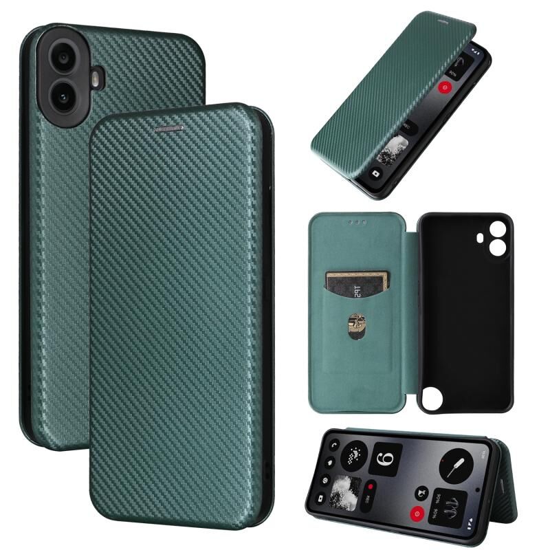 Για τίποτα CMF τηλέφωνο 1 Carbon Fiber υφή Flip δέρμα τηλέφωνο υπόθεση (πράσινο)