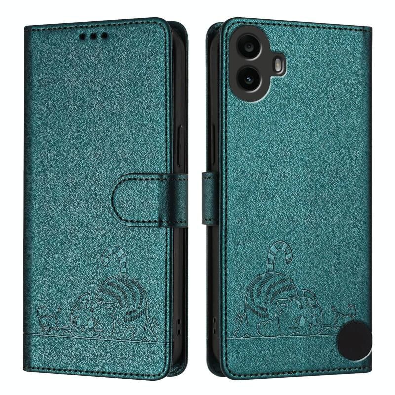 For Nothing CMF Phone 1 Cat Rat Embossed Pattern RFID Leather Phone Case with Lanyard(Peacock Green)