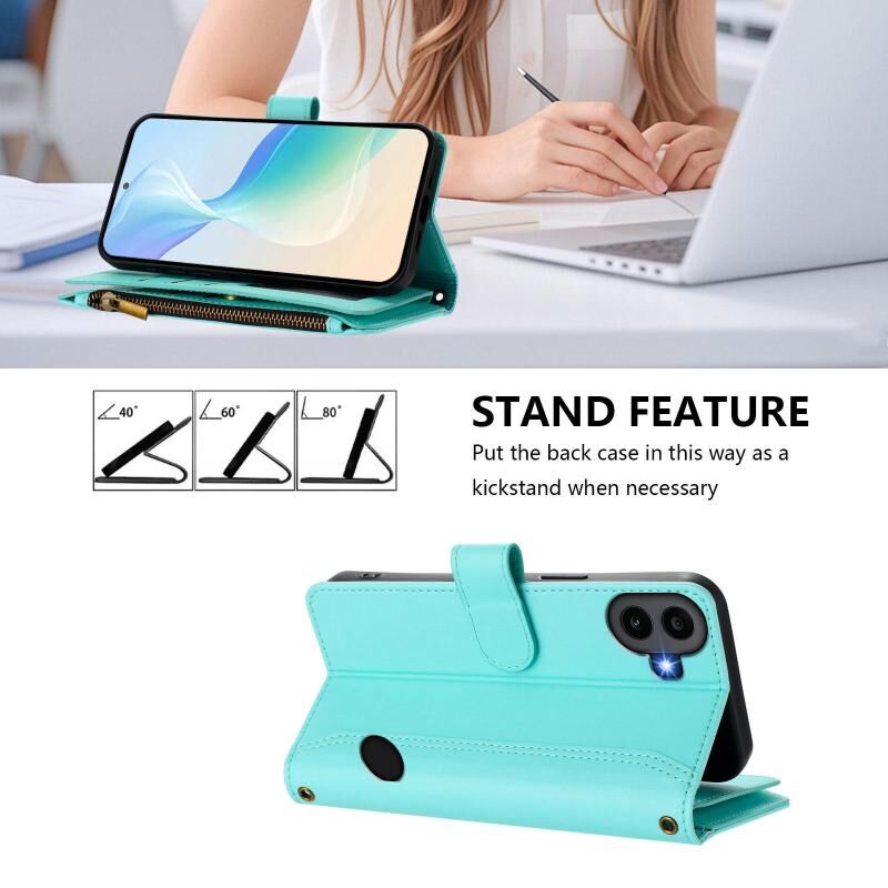 Θήκη δέρματος με μαγνητικό κλείσιμο, φερμουάρ και λουρί χειρός για Nothing CMF Phone 1, χωρητικότητας 9 καρτών (Σκούρο Μπλε)