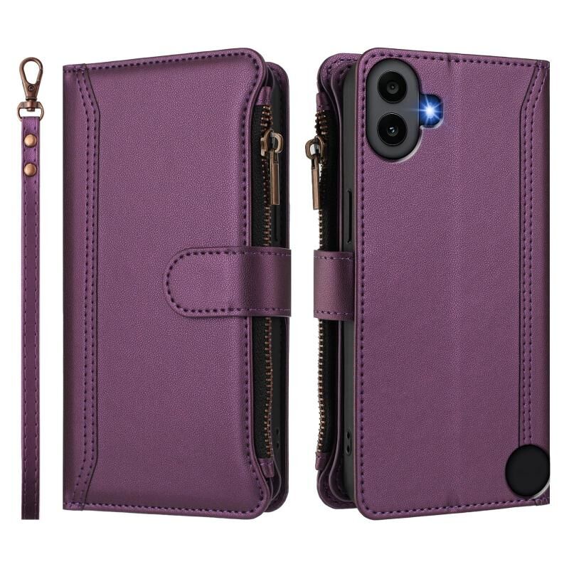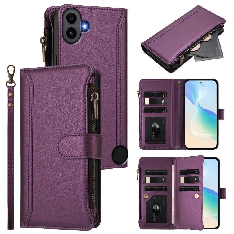 Θήκη δέρματος με μαγνητικό κλείσιμο, φερμουάρ και λουρί χειρός για Nothing CMF Phone 1, χωρητικότητας 9 καρτών (Σκούρο Μπλε)