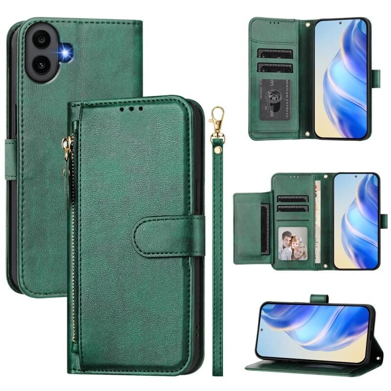 Για τίποτα CMF τηλέφωνο 1 πολλαπλών καρτών υποδοχές φερμουάρ πορτοφόλι δερμάτινη θήκη τηλεφώνου (πράσινο)