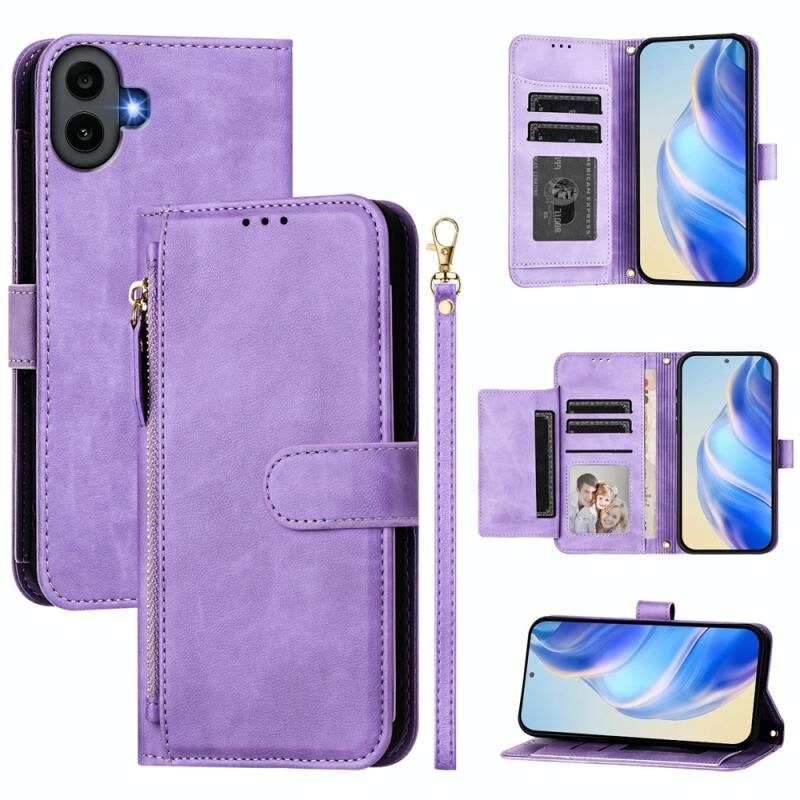 Για τίποτα CMF τηλέφωνο 1 πολλαπλών καρτών υποδοχές φερμουάρ πορτοφόλι δερμάτινη θήκη τηλεφώνου (μωβ)