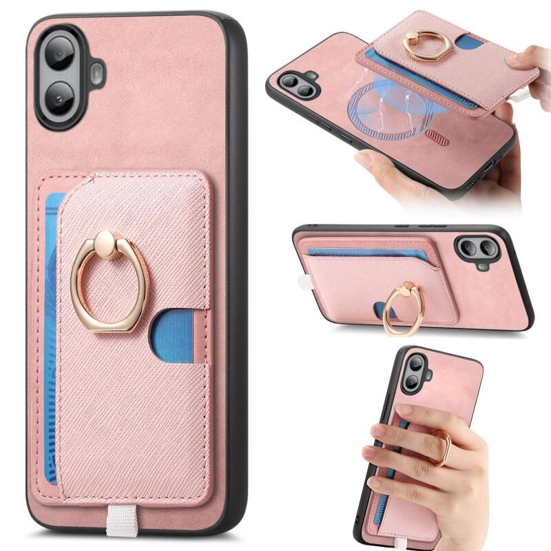 For Nothing CMF Phone 1 Retro Cross Leather Ring Side Insert Card Bag MagSafe Phone Case(Pink)