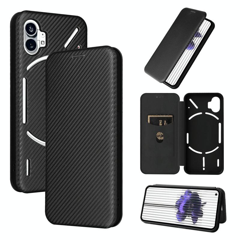 Θήκη τηλεφώνου από δέρμα με ανάγλυφη υφή ανθρακονημάτων για Nothing Phone 1 (Καφέ)