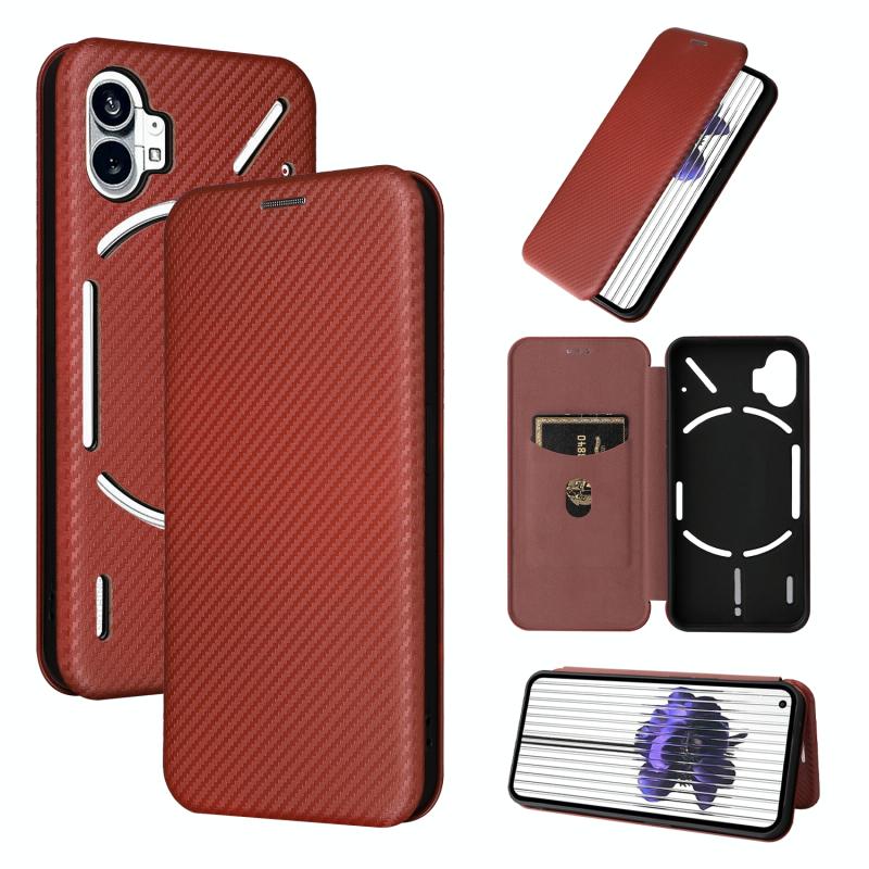Θήκη τηλεφώνου από δέρμα με ανάγλυφη υφή ανθρακονημάτων για Nothing Phone 1 (Καφέ)