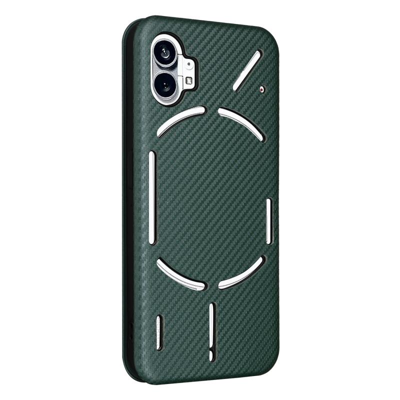 Θήκη τηλεφώνου από δέρμα με ανάγλυφη υφή ανθρακονημάτων για Nothing Phone 1 (Καφέ)