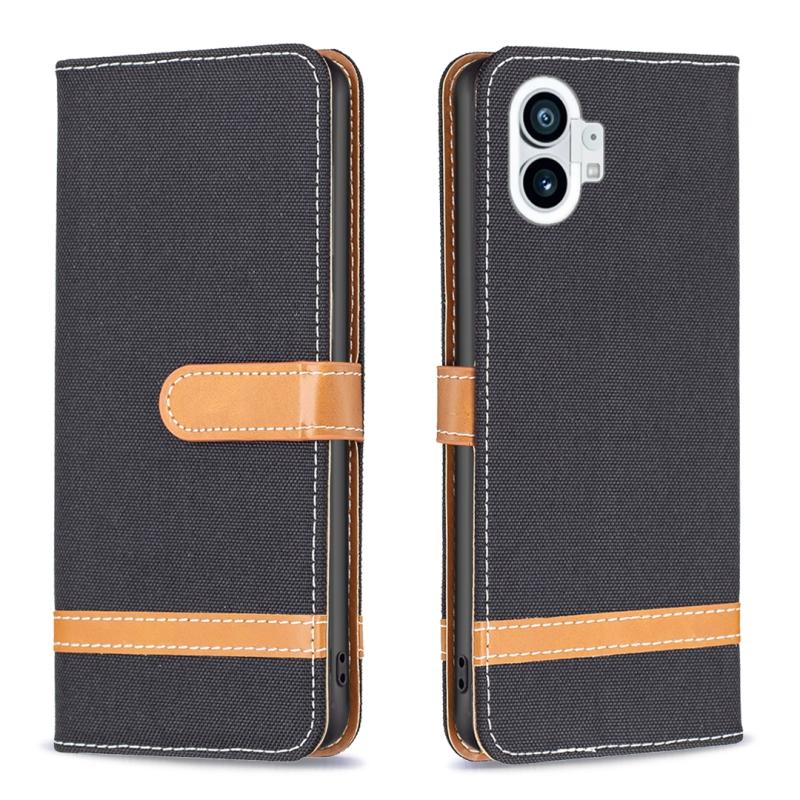 For Nothing Phone 1 Color Matching Denim Texture Leather Phone Case(Black)