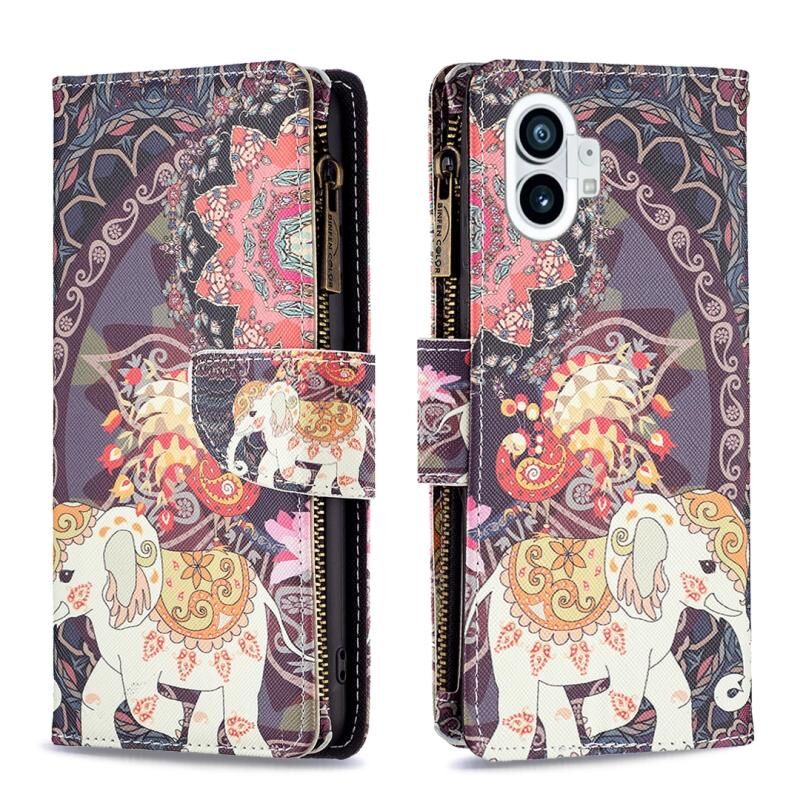 Θήκη τηλεφώνου από δέρμα με φερμουάρ και σχέδιο πολύχρωμης ζωγραφικής για Nothing Phone 1 (Κόκκινο)