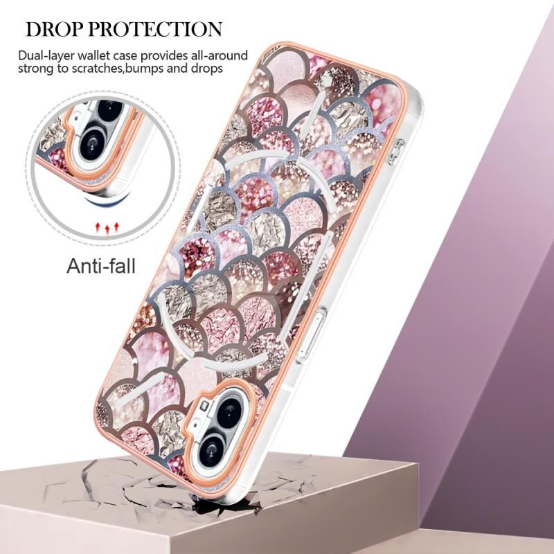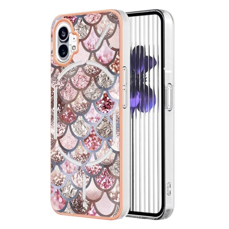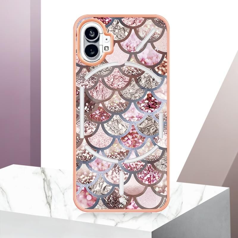 Θήκη τηλεφώνου για Nothing Phone 1 με ηλεκτρολυτική επιμετάλλωση IMD TPU με δακτύλιο (Ροζ Λέπια)